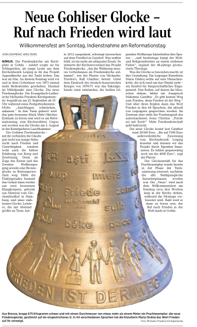 Neue Gohliser Glocke Ruf nach Frieden wird laut